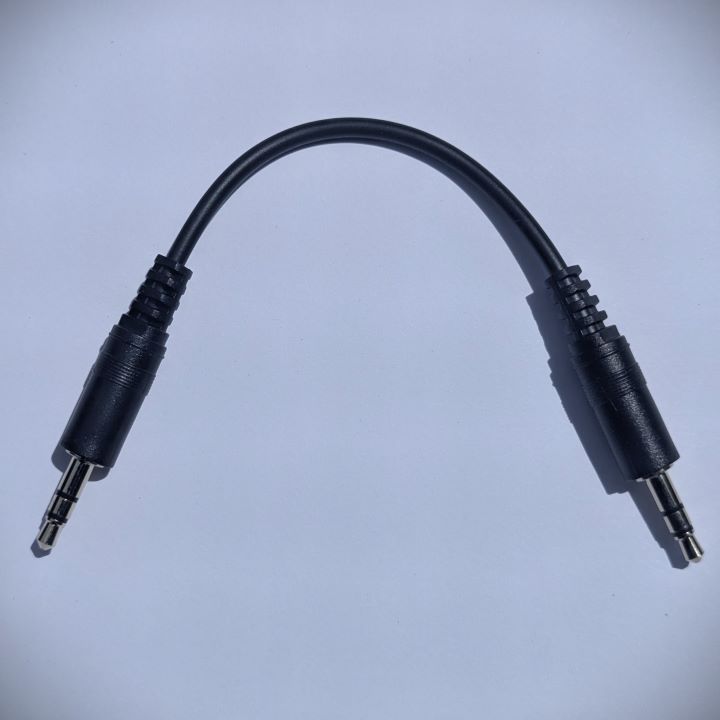 The optional short 3.5mm audio cable is supplied to connect to the MSX Game Modules’s output and passthrough and mix with the Music module.